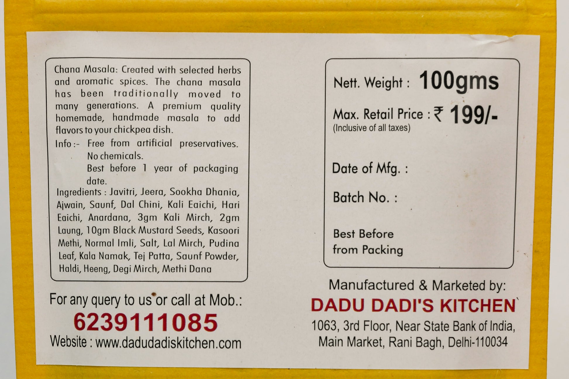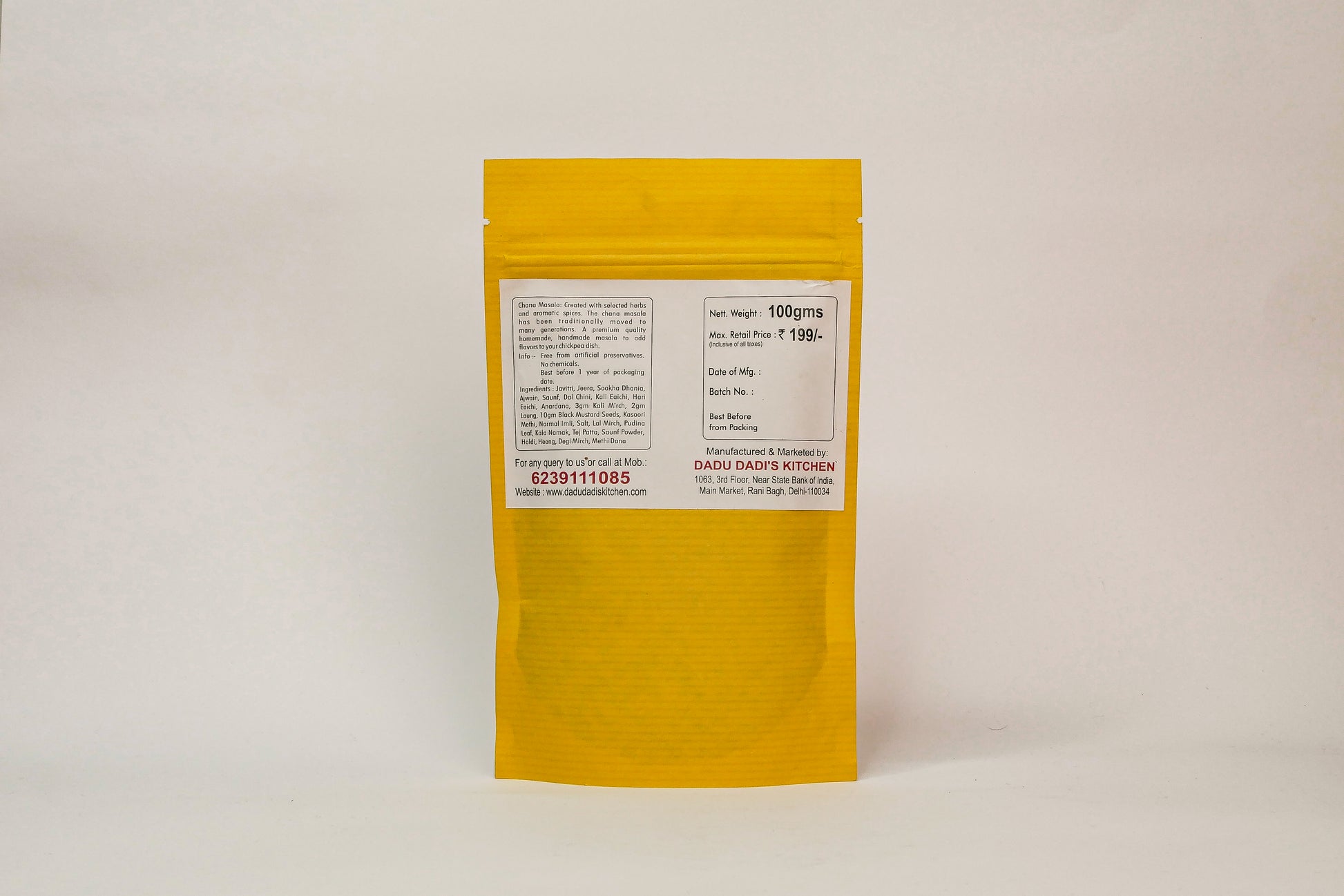 Chana Masala: Created with selected herbs and aromatic spices. The chana masala has been traditionally moved to many generations. A premium quality homemade, handmade masala to add flavours to you chickpea dish.