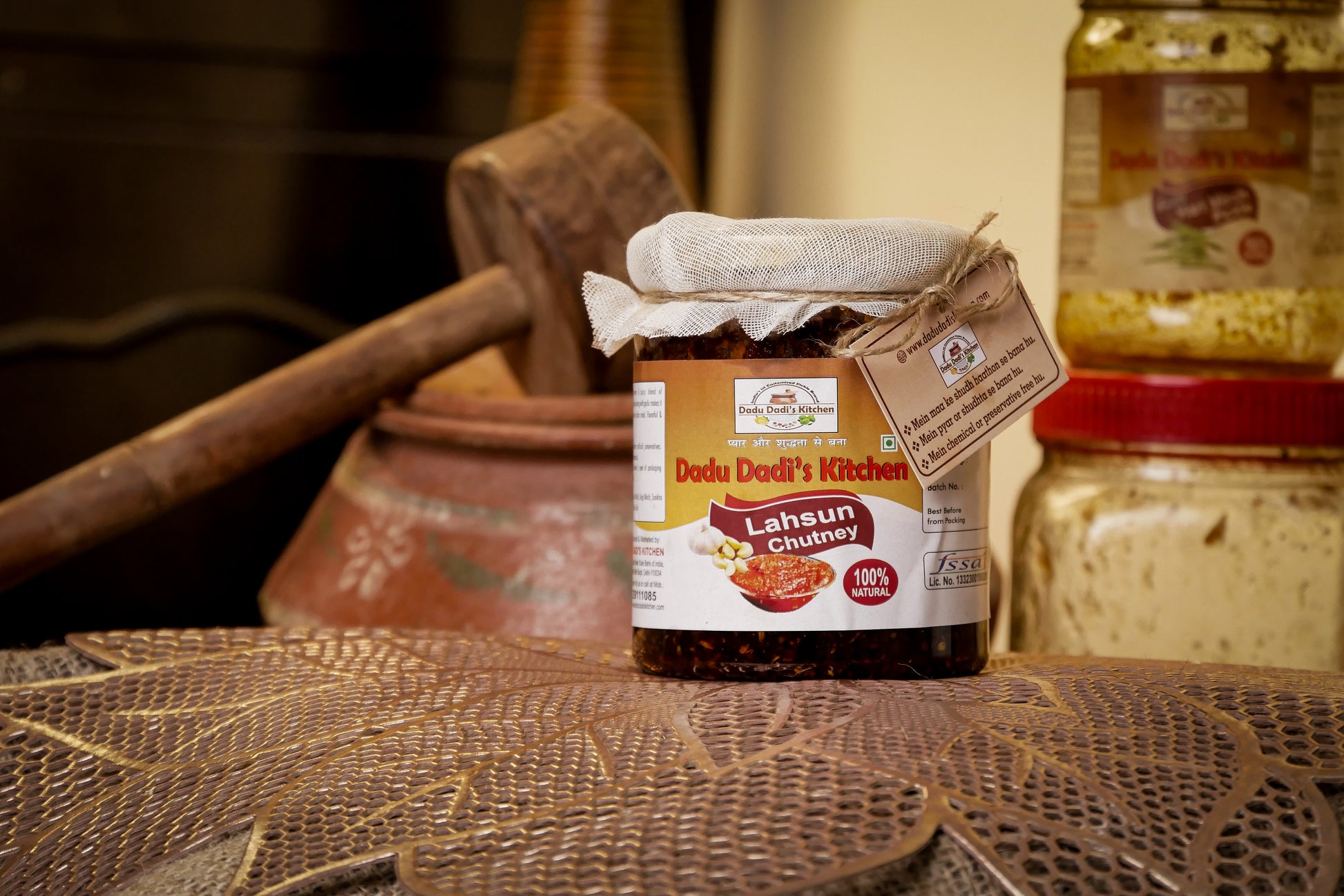 Lahsun Chutney: A spicy blend of the homemade spices along with garlic makes itmatch with any Indian meal. Flavorful and garlicky.