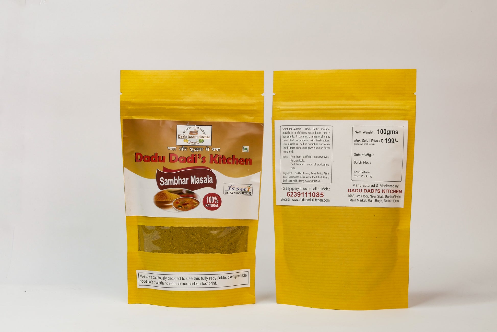 Sambhar Masala: Dadudadi’s sambar masala is a delicious spice blend that is homemade. It contains a mixture of many spices that are prepared with fresh spices. This masala is used in sambar and other South Indian dishes and gives a unique flavor to the food.