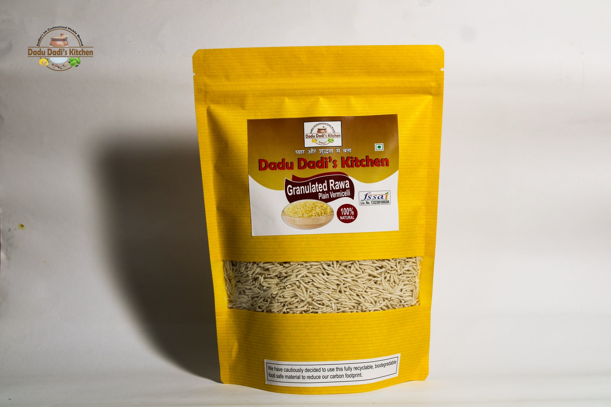 Made from Semolina (Rava/Sooji). Processed in RO Water. 100% natural ingredients, non-sticky and ready-to-cook. Healthy, Nutritious and Flavoursome. No added preservatives/colours. High in Vitamins and Minerals, low on Fat and is an excellent source of energy.