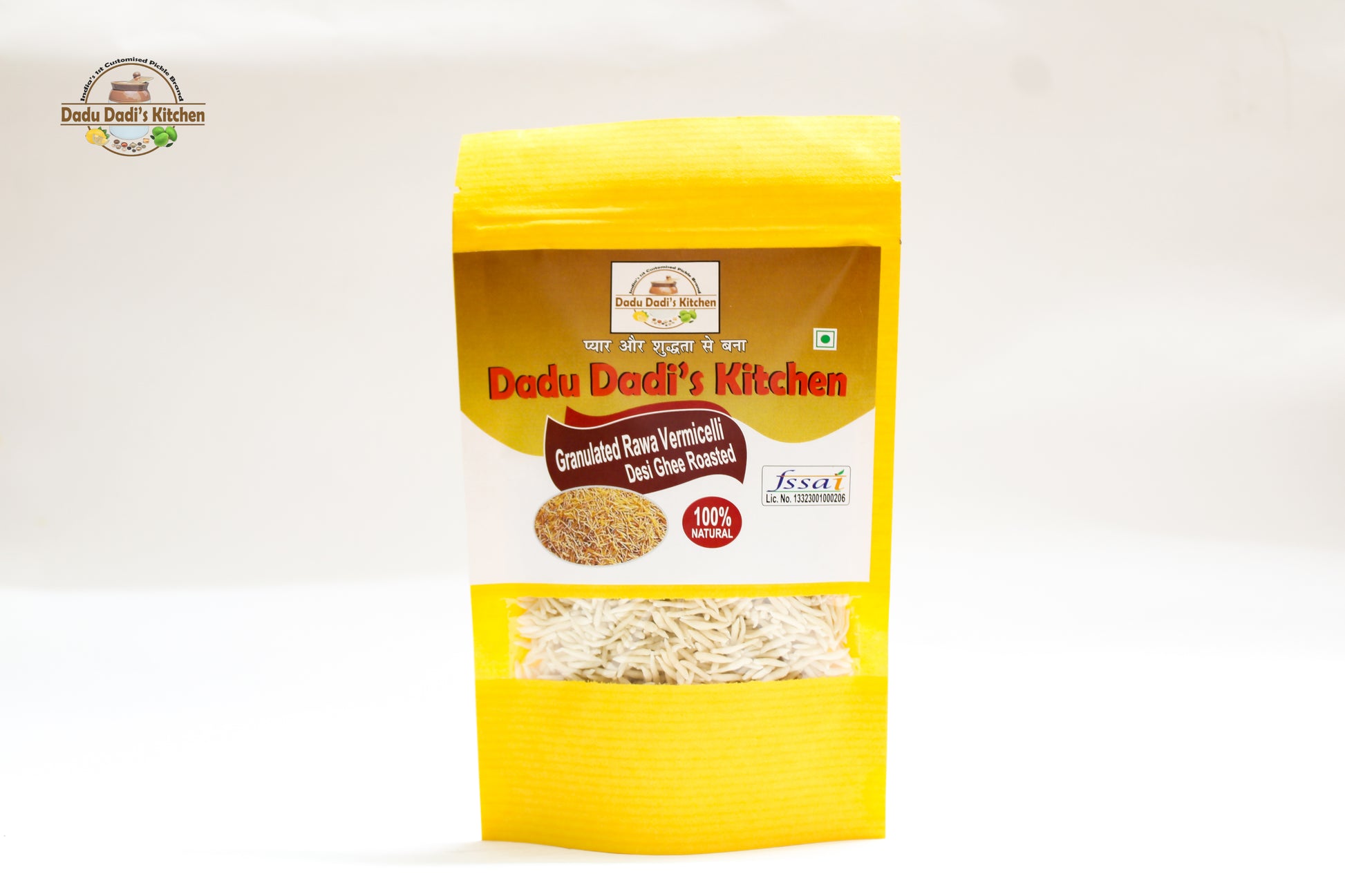 Made from Vermicelli Desi Ghee Roasted. Processed in RO Water. 100% natural ingredients, non-sticky and ready-to-cook. Healthy, Nutritious and Flavour some. No added preservatives/colours . High in Vitamins and Minerals, low on Fat and is an excellent source of energy.